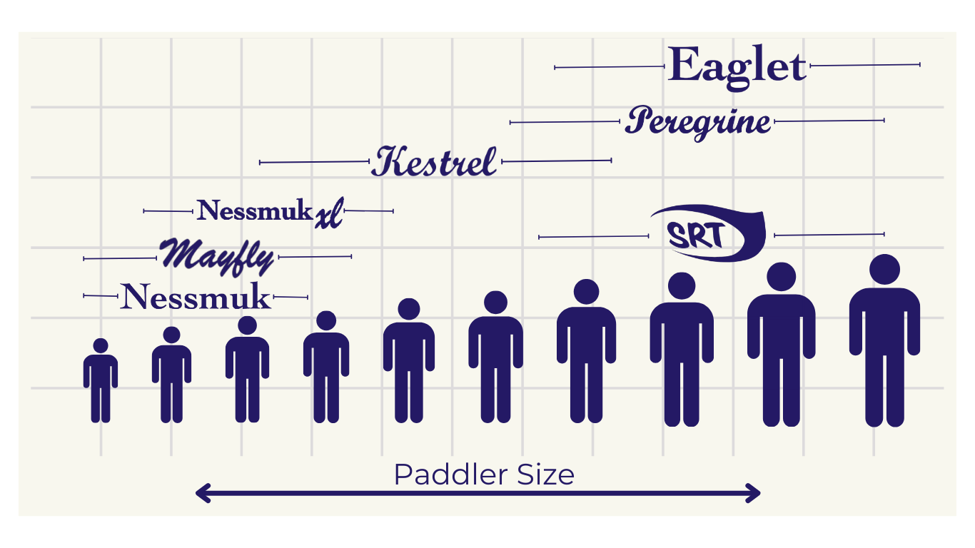Canoes perform best when they’re matched to the paddler and the intended load. This chart shows how the different models align with common paddler sizes and typical gear loads